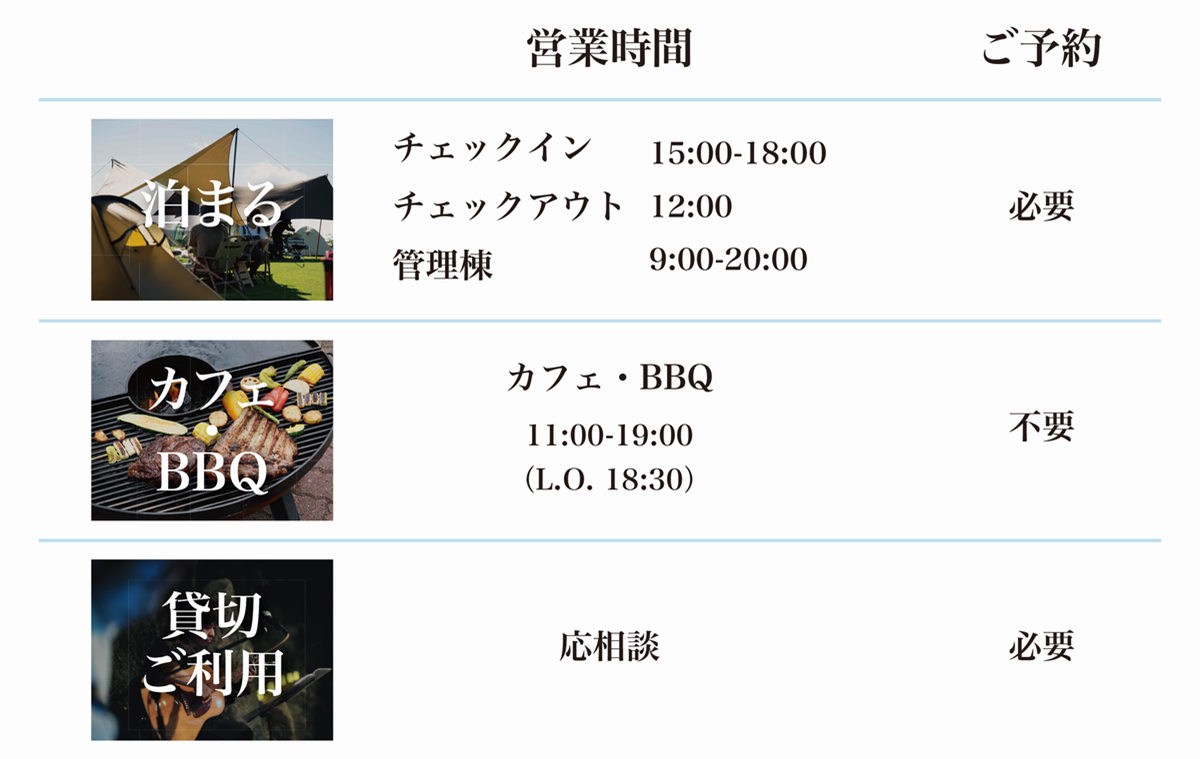 カフェ、バーベキューのみご利用でご来場いただくお客様は、